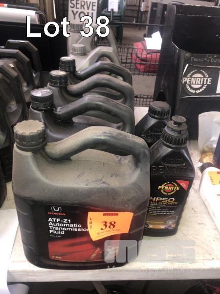 8 x PART BOTTLES, HONDA/FUCHS/PENRITE TRANS FLUID, PLUS POWER STEERING FLUID