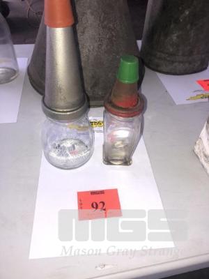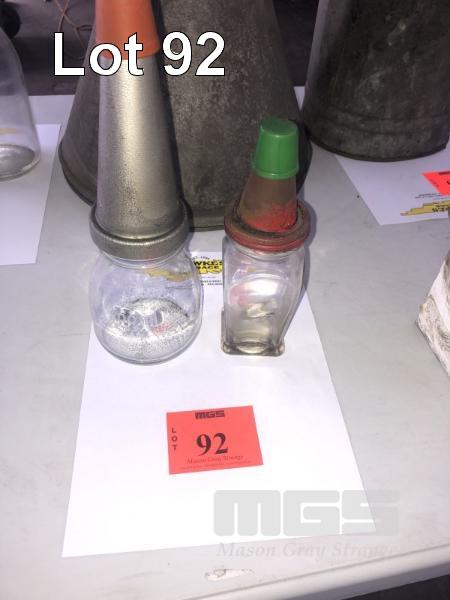 2 x OIL BOTTLES, SQUARE TIN TOP & 500ml B.T