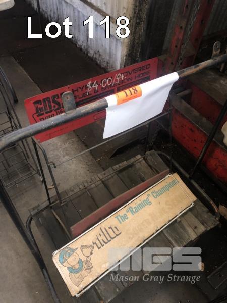 GOSS HOSE RACK, TRICO RACK, ANTIQUE BATTERY TROLLEY