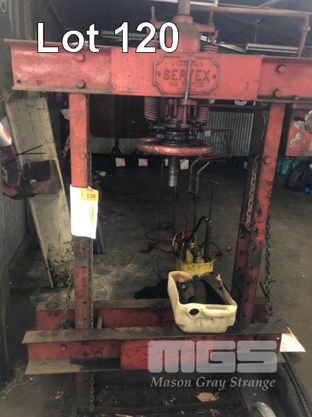SERVEX HYDRAULIC WORKSHOP PRESS, SINGLE STAGE, 30 TON CAP, CHAIN RISE & FALL