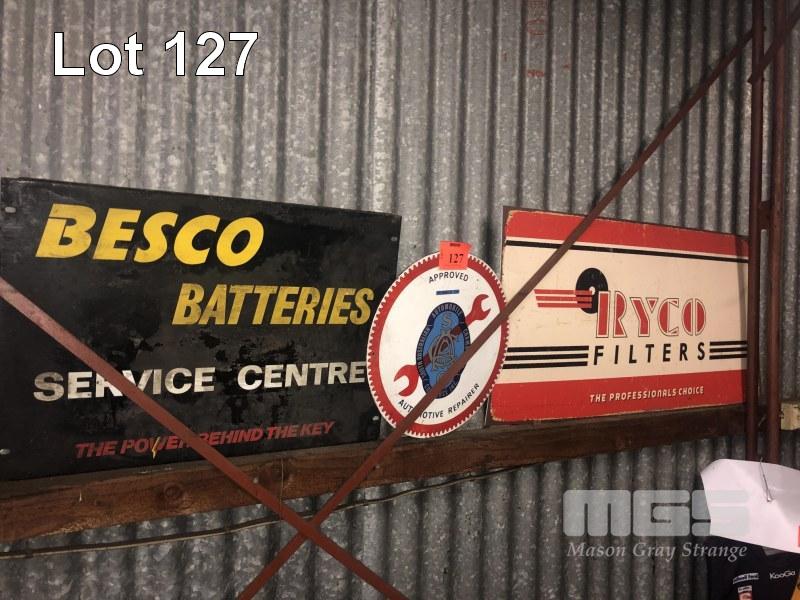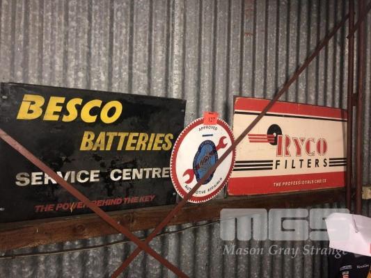 APPROVED AUTOMOBILE, BESCO BATTERIES TIN SIGNS, RYCO FILTERS CORFLU SIGN