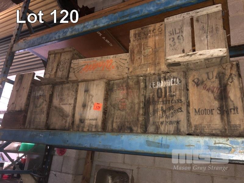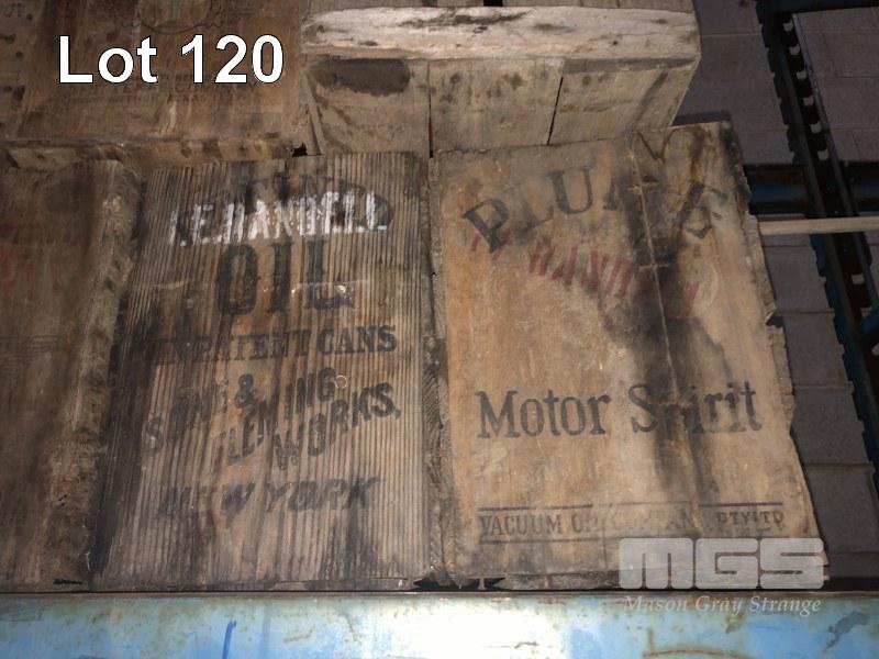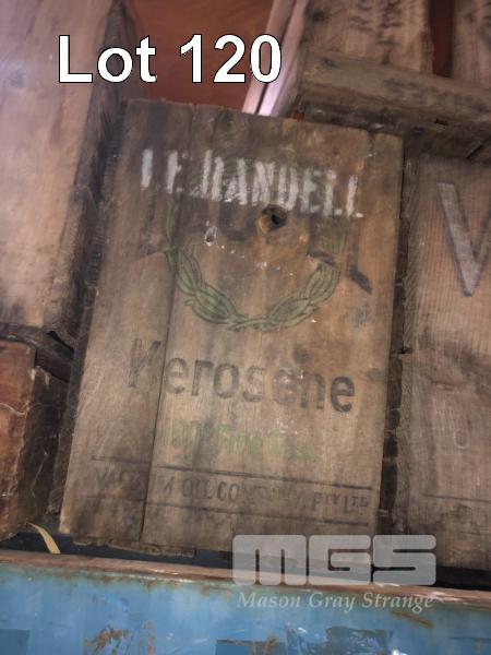 ANTIQUE WOODEN CRATES & BOXES INC PETROL & POL, 1 x BAY