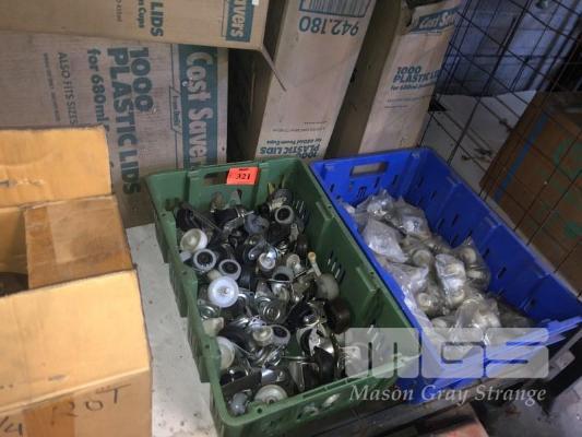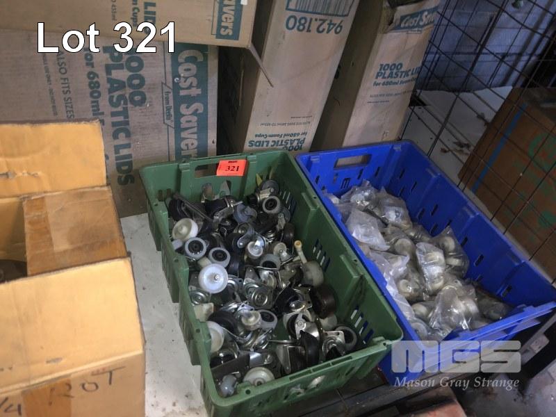 2 x TRAYS CASTOR WHEELS & 5 x CARTONS PLASTIC CUPS