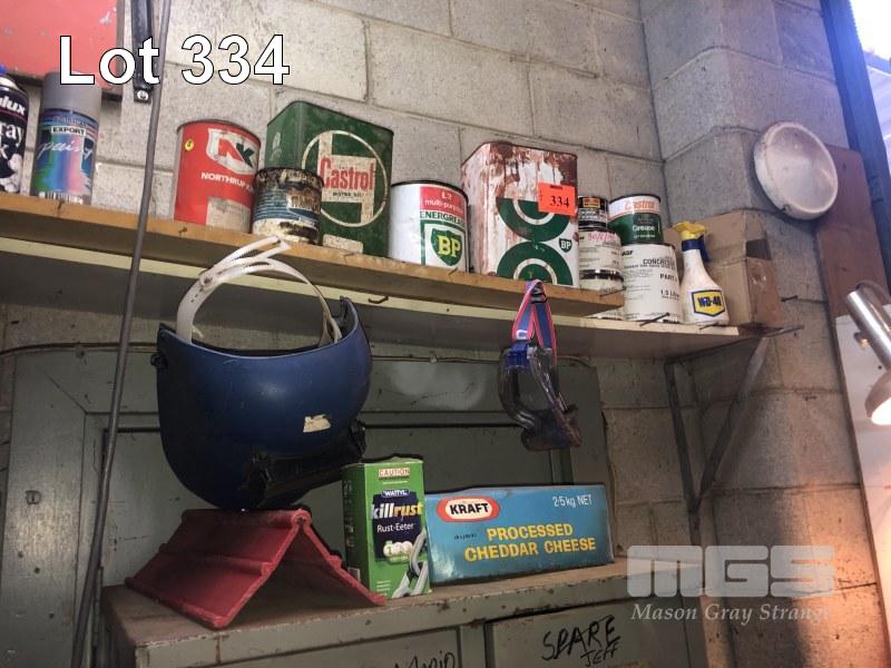 ASSORTED OILS, GREASE & HEAD SHIELDS