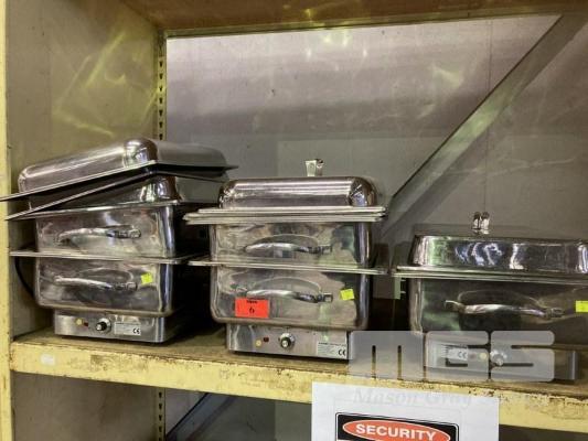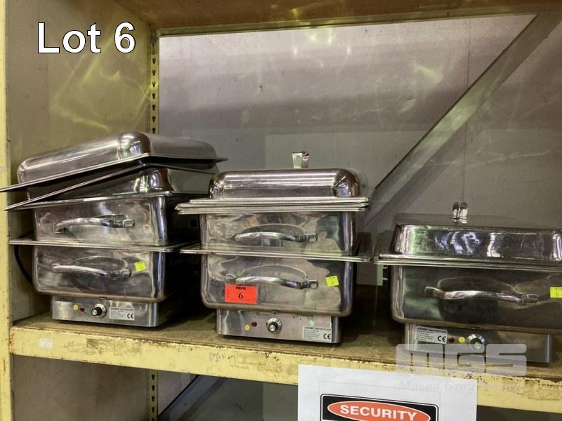 5 x STAINLESS STEEL ELECTRIC CHAFING DISHES, SUNNEX, 240V WITH LIDS