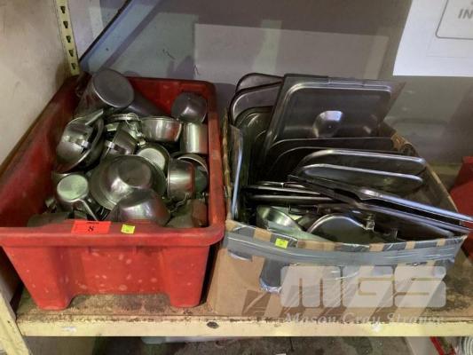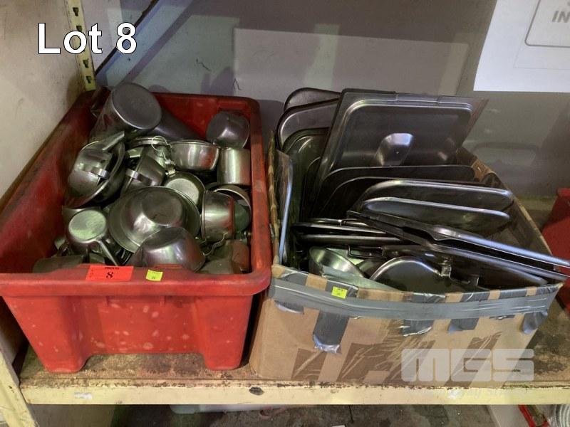 LARGE QUANTITY STAINLESS STEEL LIDS, BOWLS, JUGS, ETC, 2 x BOXES