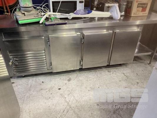 COUNTER CHEFS FRIDGE, 3 DOOR 280cm, STAINLESS STEEL CASED SELF CONTAINED UNIT, 240V