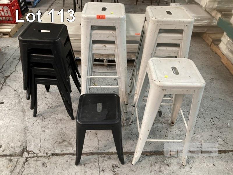 12 x ASSORTED TOLIX REPLICA STOOLS, BLACK & CREAM STEEL