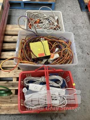 BATTERY CHARGER, EXTENSION LEADS, CABLE, ETC, 3 x TUBS