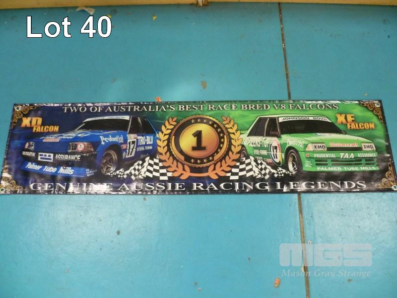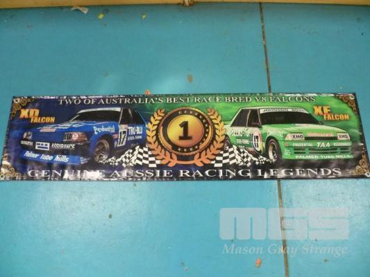 AUSSIE RACING LEGENDS SIGN "TRU BLU + GREENS TUF" FALCONS CANVAS SIGN 1300 x 240mm