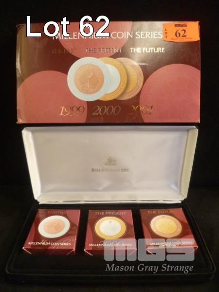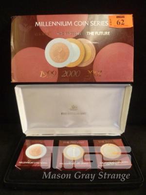 MILLENNIUM COIN SERIES 1999, 2000 2001 PAST PRESENT FUTURE 3 COIN PROOF SET IN DISPLAY BOX