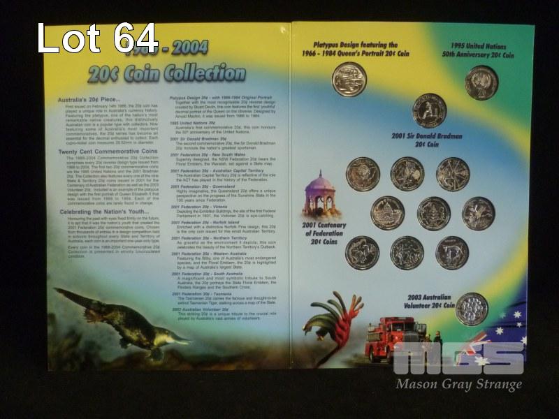 1966 - 2004 20c COIN COLLECTION IN FOLDER 13 x COINS UNC