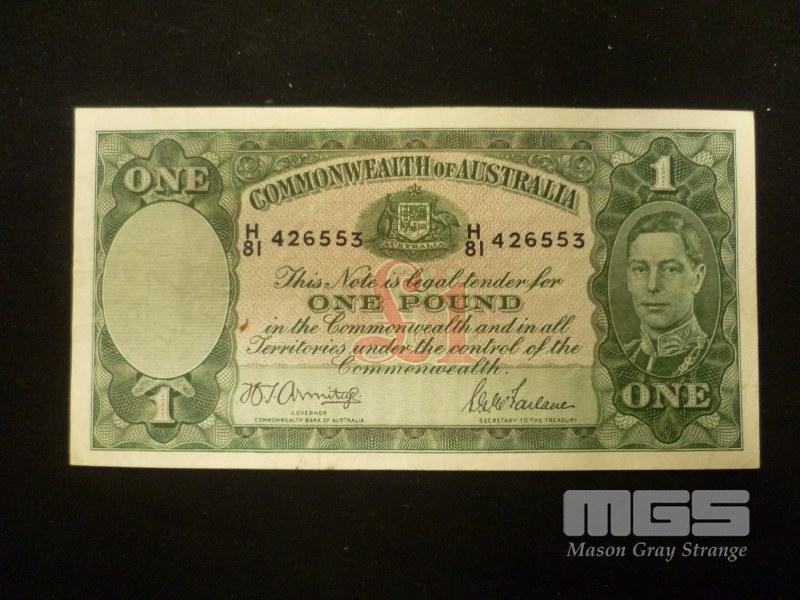1942 1 POUND NOTE ARMITAGE MCFARLANE KEY DATE NICE GRADE