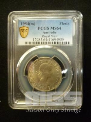 1954 ROYAL VISIT AUST FLORIN GRADED CHOICE UNC 64