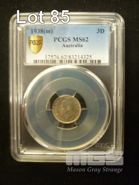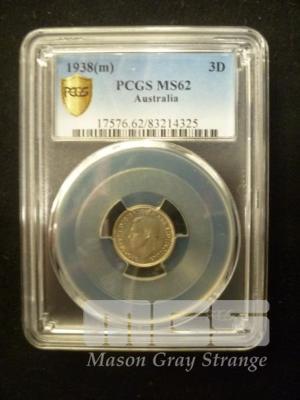 1938 AUSTRALIA THREEPENCE GRADED UNC MS62