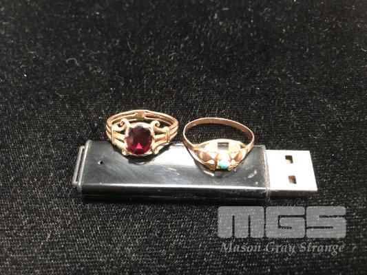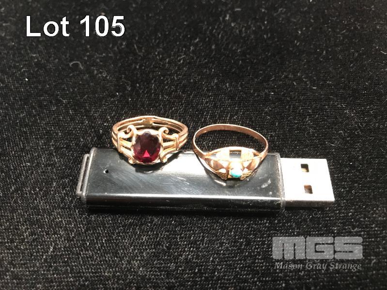 2 x GOLD COLOURED RINGS, 1 x SET WITH PINK, 1 x AQUA STONE, UNKNOWN CT, 4.3 GMS