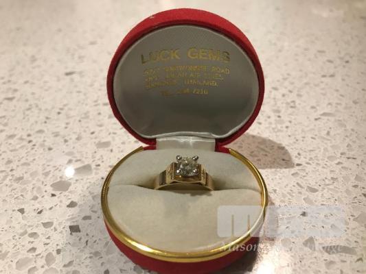 GOLD & DIAMOND ENGAGEMENT RING, 1 X LARGE DIAMOND 2 X SMALL DIAMONDS MARKED 18CT, 5.4 GMS