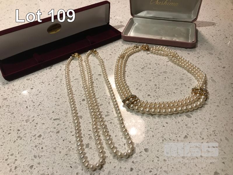 SASHIMA TRIPLE PEARL CHOKER/NECKLACE & PAIR OF SINGLE STRAND FRESH WATER PEARL NECKLACES