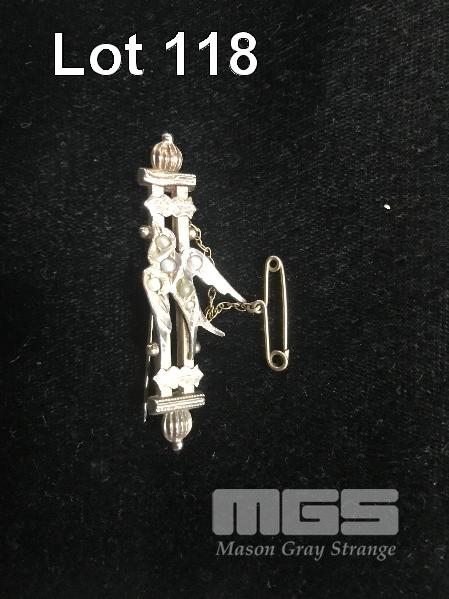 GOLD DOUBLE BAR SHAPED BROOCH, WITH SWALLOW,SET WITH 6 SMALL PEARLS, MARKED 9CT, 3.8 GMS