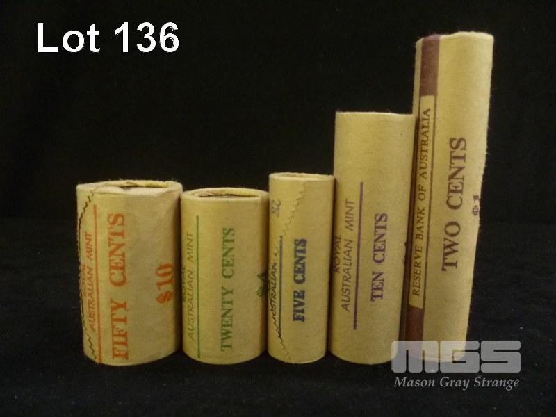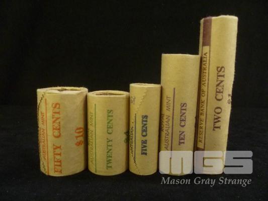 5 X ROYAL AUSTRALIAN MINT, 1982, UNCIRCULATED, COIN BANK ROLLS, INC; 2c, 5c, 10c, 20c, 50c