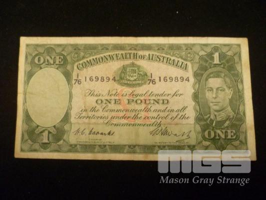 1949 AUSTRALIAN ONE POUND BANKNOTE, COOMBS/WATT