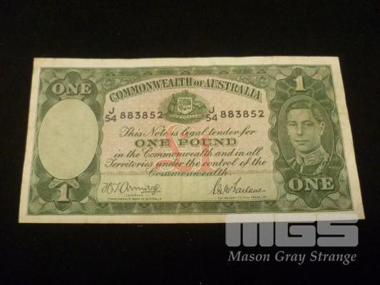 1942 AUSTRALIAN ONE POUND BANKNOTE, ARMITAGE/MACFARLANE