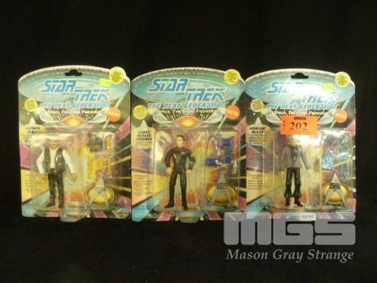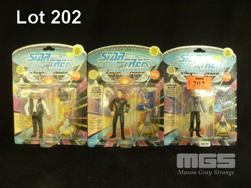 3 x STAR TREK THE NEXT GENERATION ACTION FIGURES, INC CADET WESLEY CRUSHER, CAPTAIN SCOTT, ADMIRAL MCCOY