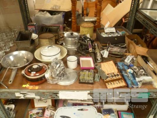 ASSORTED KITCHENWARE, UTENSILS, CUTLERY, SOUVENIR SPOONS, ETC