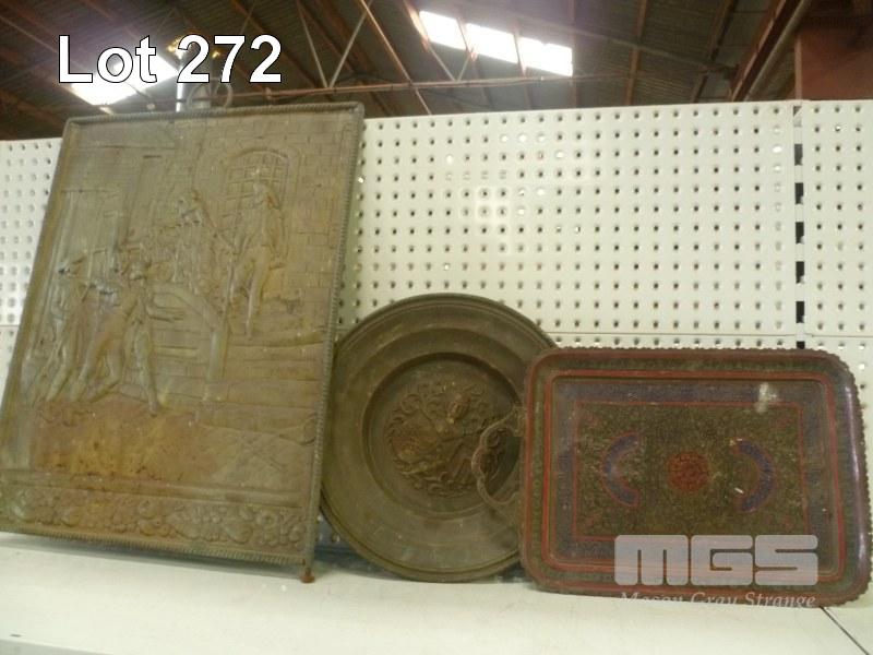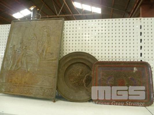 3 X EMBOSSED BRASS ITEMS, INC; FIRE SCREEN, PLATE & TRAY