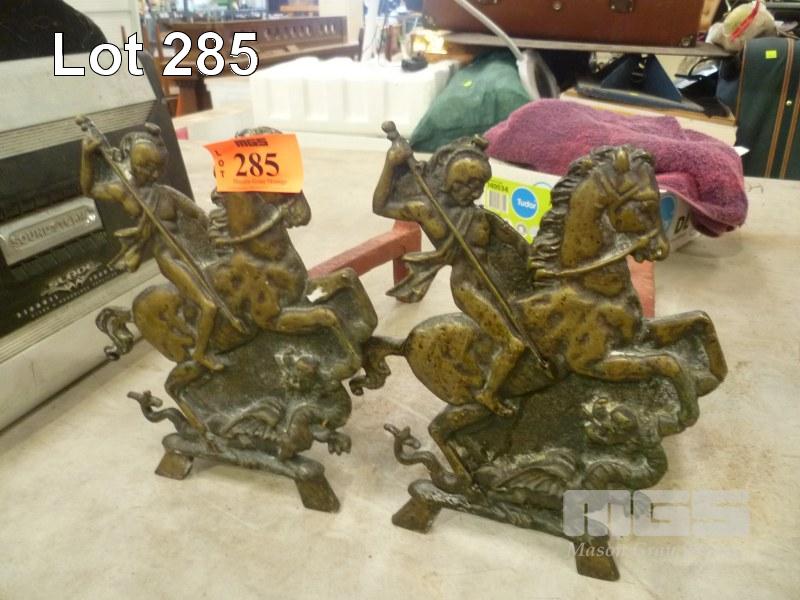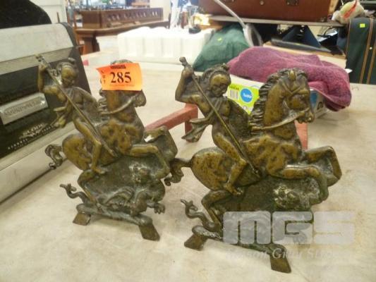 2 x CAST BRASS DOGS DEPICTING KNIGHT & DRAGON