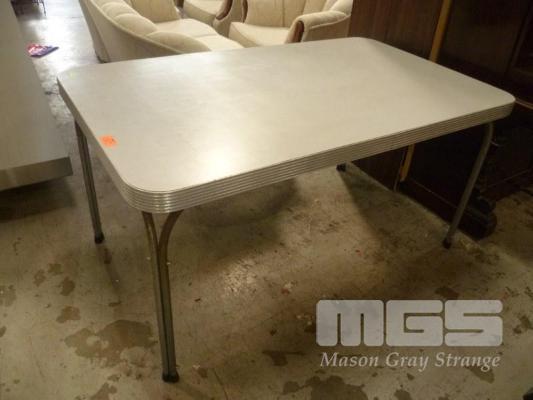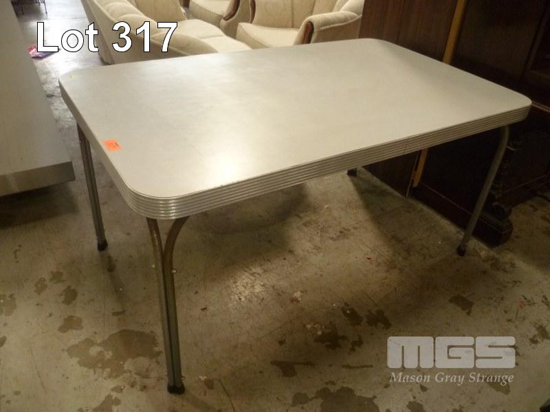 RETRO DINING TABLE, CHROME LEGS, GREY LAMINATE TOP