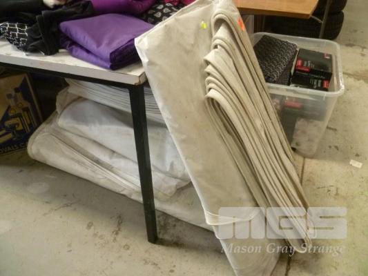 5 x ASSORTED, HEAVY DUTY ADVERTISING TARPS, UNKNOWN SIZES