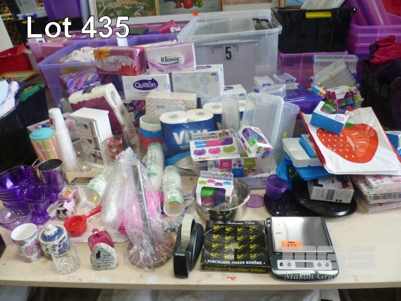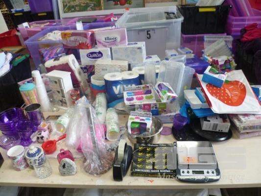 TISSUES, HAND TOWELS, PLASTIC KITCHEN CONTAINERS, CUPS, ETC, 1 x TABLE