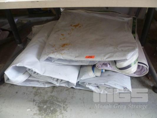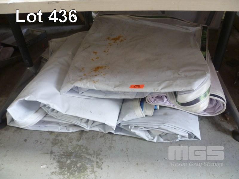 5 x ASSORTED, HEAVY DUTY ADVERTISING TARPS, UNKNOWN SIZES