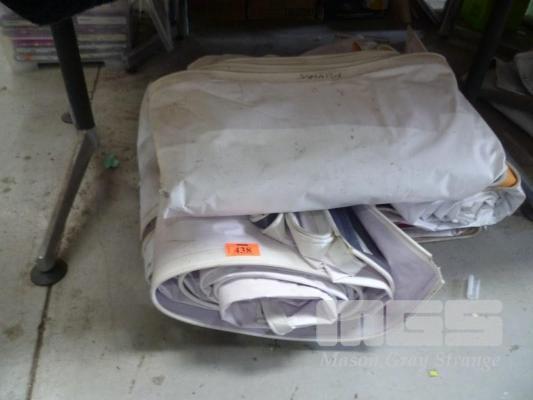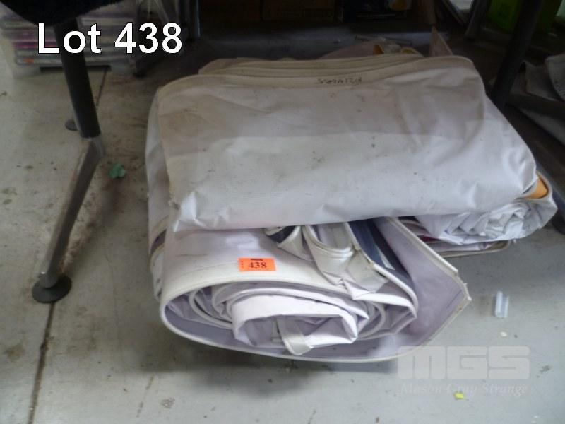 5 x ASSORTED, HEAVY DUTY ADVERTISING TARPS, UNKNOWN SIZES