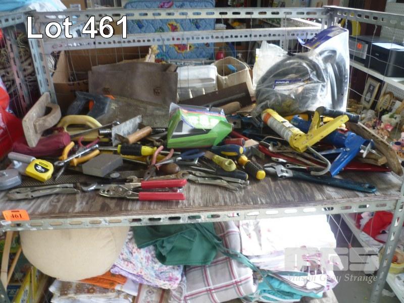 ASSORTED HAND TOOLS INC PLIERS, SPANNERS, SAWS, TROWELS, SHIFTERS, FILES, 1 x BAY