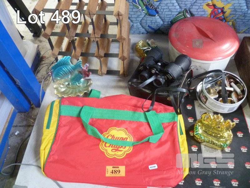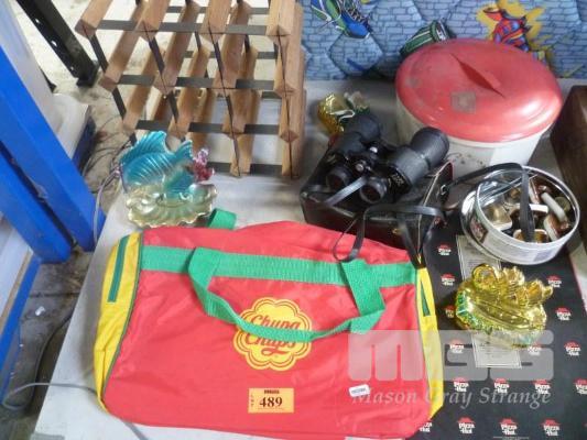 BINOCULARS & ASSORTED COLLECTABLES, 1 x SHELF