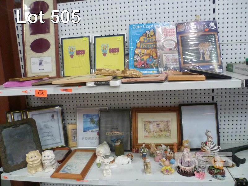 ASSORTED PHOTO FRAMES & ORNAMENTS (2 X SHELVES)