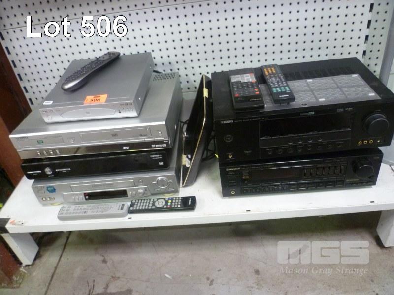 COLLECTION OF AUDIO/VISUAL COMPONENTS, INCL YAMAHA NATRUAL SOUND AV RECEIVER, RX-V361 WITH REMOTE PIONEER AUDIO/VIDEO STEREO RECEIVER, VSX-3600 WITH REMOTE SONY 6 HEAD VCR WITH REMOTE TOPFIELD DIGITAL RECEIVER, TF7100HDPVRT, WITH REMOTE SAMSUNG DVD/VHS COMBO, NO REMOTE DIGITREX DVD PLAYER, NO REMOTE HARMONY UNIVERSAL REMOTE