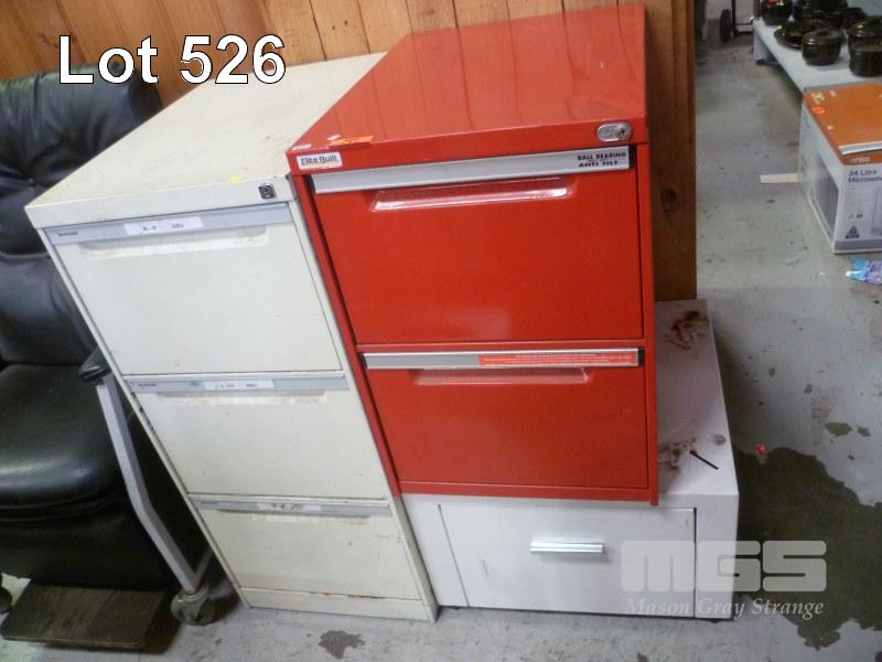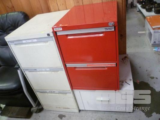 RED ELITE FILING CABINET, 2 DRAWER, BEIGE BROWNBUILT FILING CABINET, 3 DRAWER & SINGLE DRAWER METAL CABINET