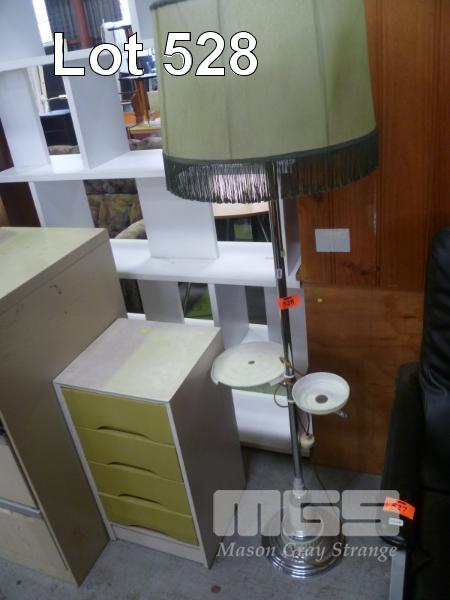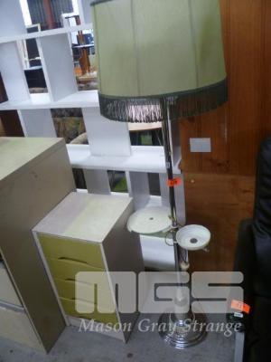 ART DECO, CHROME STANDARD LAMP & PAINTED 4 DRAWER BEDSIDE CABINET