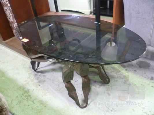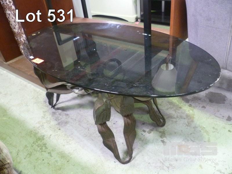 RETRO OVAL COFFEE TABLE, METAL FRAME, SMOKEY GLASS TOP