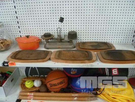 LE CREUSET POT, CAST IRON HOT PLATES & KITCHEN SCALES
