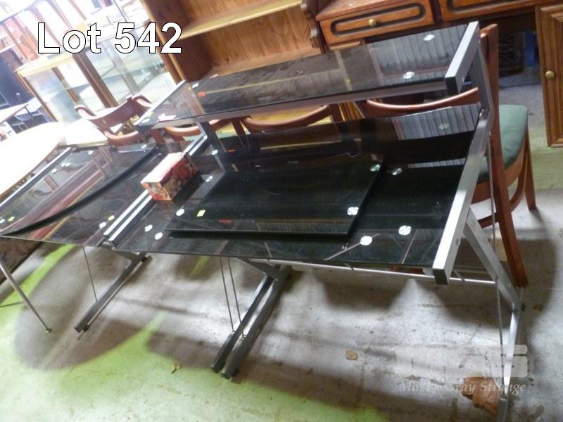 2 x COMPUTER DESKS, METAL FRAME, GLASS TOPS