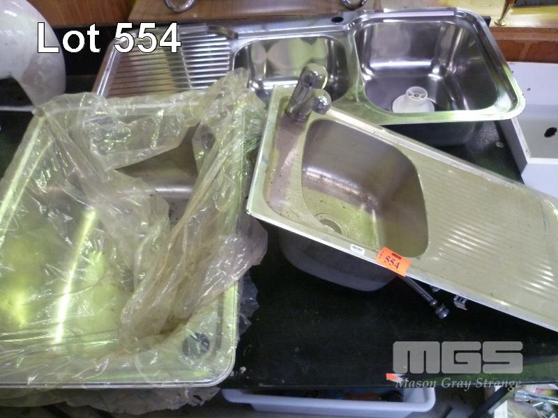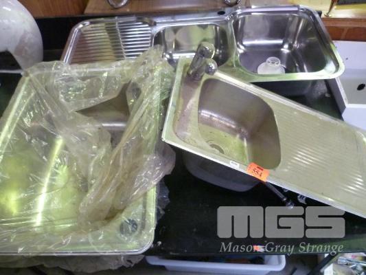 3 x ASSORTED STAINLESS STEEL SINKS, DUAL BOWL,SINGLE & LAUNDRY TROUGH