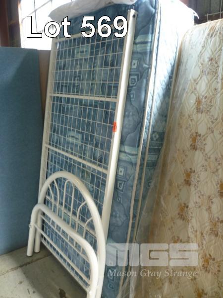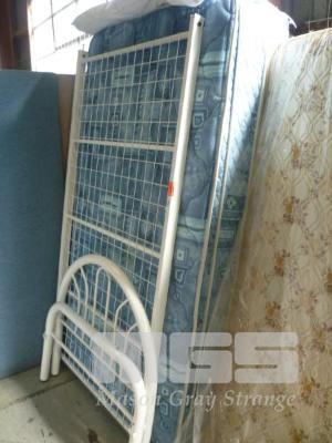 SINGLE BED ENSEMBLE & SINGLE BED, WHITE PAINTED METAL FRAME