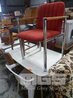 LAMINATE TOP DINING TABLE, 2 x OUTDOOR CHAIRS, ARM CHAIR & DINING CHAIR