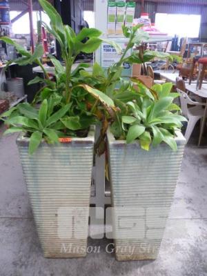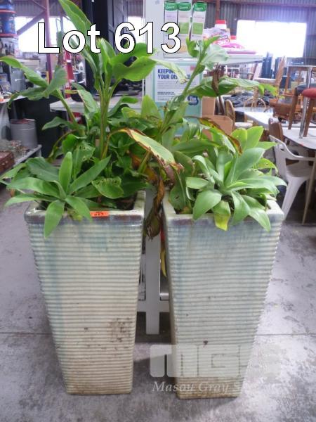 PAIR LARGE GLAZED POTS WITH POTTED AGAVE