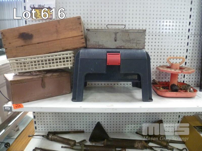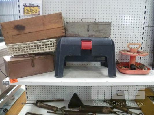 3 x TOOL BOXES, 3 x TRAYS & WOODEN CRATE