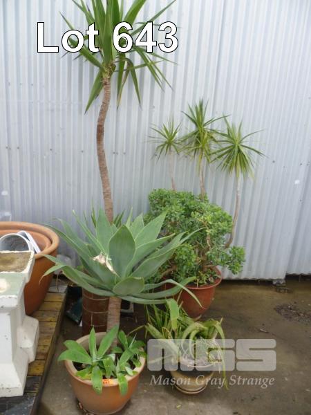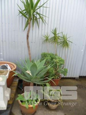 4 x POTTED PLANTS INC AGAVE, YAKKA, ALOE VERA, ETC